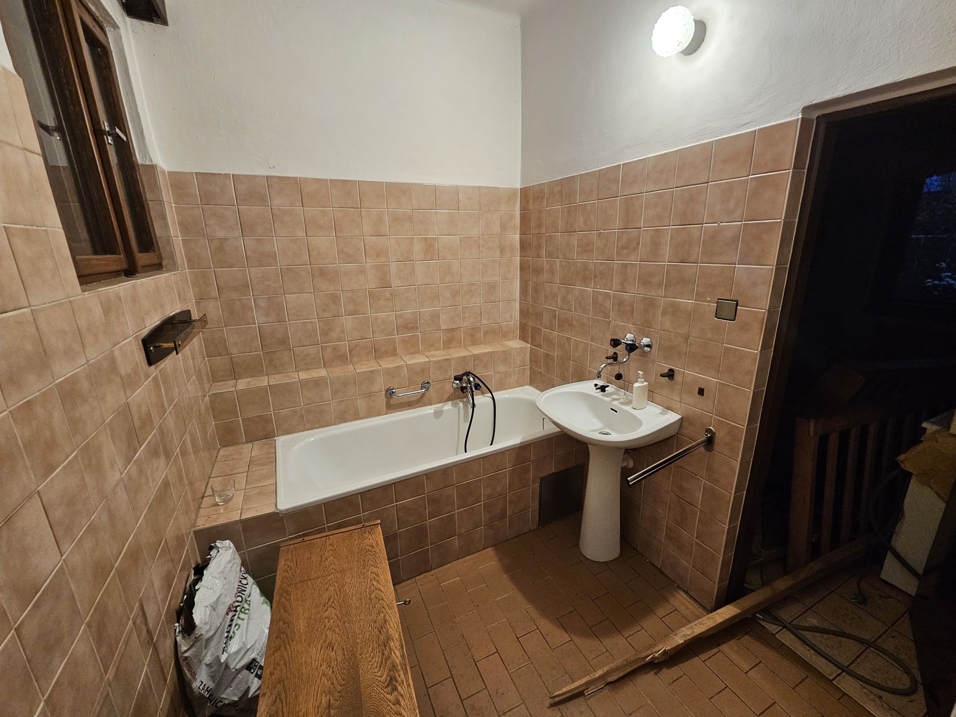 Dům je zděné cihlové konstrukce, vytápění je zajištěno plynovým kotlem. Podlahy tvoří parkety a keramická dlažba.